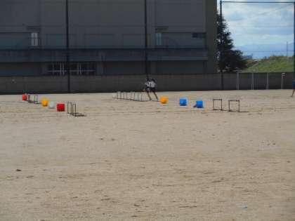 体育では、ハードル走に取り組みました。ハードル間の歩数を考えて練習しました。
