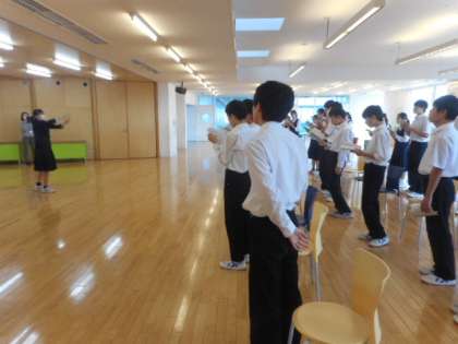 合唱練習の様子(その2) 公開日 2021/10/15 更新日 2021/10/15 芝園の一日 10月15日(金) 昨日放課後の合唱練習の様子です。 前後の距離をとり、マスクをして感染症対策を行って練習しています。芝中の顔である大階段も練習場所の一つです。練習の締めくくりに、話合いをして、今日の練習を振り返りました。