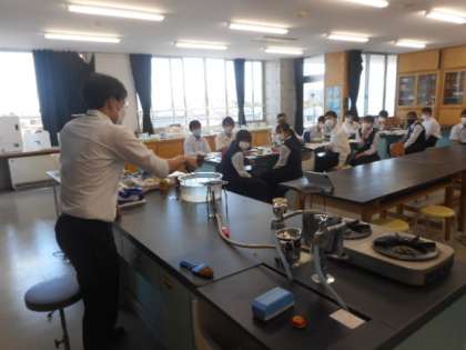 理科では、熱した空き缶を水に入れて冷やす実験から大気圧について考えました。