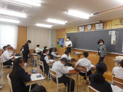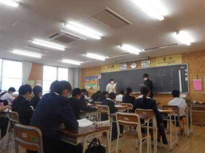 道徳研修会(1年生:その2) 公開日 2021/10/19 更新日 2021/10/19 芝園の一日 10月19日(火) 本日の5、6限に道徳の授業を公開しました。 1年生では、「集団生活の充実」、「よりよく生きる喜び」を主題にした教材を読み、考えを深めました。