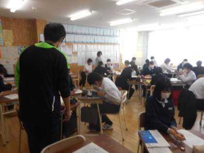 国語では、島崎藤村の「初恋」の詩を読みました。比喩表現を確認しながら、作者の思いに迫りました。