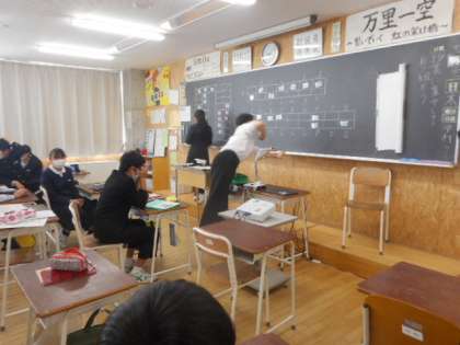 本日の授業(2年生:その2) 公開日 2021/10/21 更新日 2021/10/21 芝園の一日 10月21日(木) 2年生の授業の様子です。 学級活動では、校外学習に向けて話し合い活動をしました。 音楽では、合唱コンクールの自由曲の練習をしました。