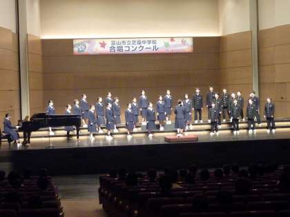 合唱コンクール(その1) 公開日 2021/10/25 更新日 2021/10/25 芝園の一日 10月25日(月) 今日は、オーバードホールにおいて、合唱コンクールを行いました。 生徒たちは、最高の舞台で、最高の合唱を披露しました。 1年A組の合唱の様子です。