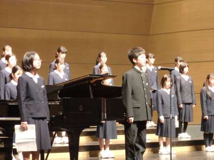 合唱コンクール(その2) 公開日 2021/10/25 更新日 2021/10/25 芝園の一日 10月25日(月) 今日は、オーバードホールにおいて、合唱コンクールを行いました。 生徒たちは、最高の舞台で、最高の合唱を披露しました。 1年B組の合唱の様子です。