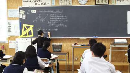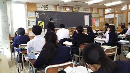 本日の授業(2年生:その3) 公開日 2021/10/26 更新日 2021/10/26 芝園の一日 10月26日(火) 2年生の数学の様子です。 「三角形の内角の和は180度であることを説明しよう」という課題に取り組みました。
