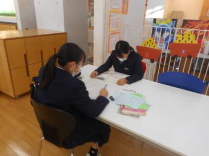SKIP学習の様子 公開日 2021/10/28 更新日 2021/10/28 芝園の一日 10月28日(木) 昨日の朝のSKIP学習の様子です。 「どこでもSKIP」は、教室だけでなく多目的スペースなどを活用して自主的に学習に取り組んでいます。それそれの生徒が目標をもって学習に取り組んでいました。
