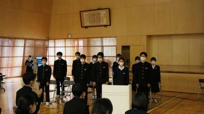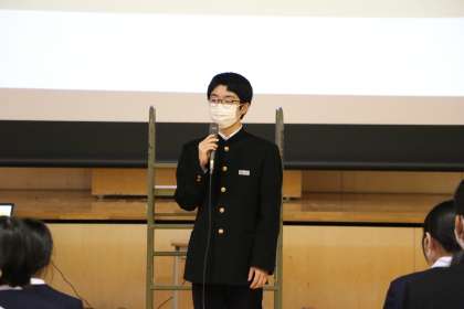 生徒会執行部・専門委員会 振り返り集会(その3) 公開日 2021/10/28 更新日 2021/10/28 芝園の一日 10月28日(木) 昨日行った生徒会執行部・専門員会 振り返り集会の様子です。 令和2年度後期、令和3年度前期生徒会執行部・専門委員会の振り返り集会を行いました。 執行部、専門委員長が、活動のよかった点や課題などを発表しました。 1年間、さまざまな活動の中心として尽力しました。1年間ありがとうございました。