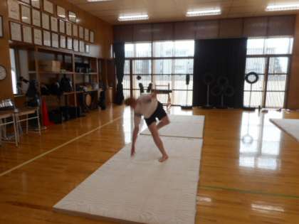 体育では、マット運動が始まりました。基本的な体の使い方を学び、自分のできる技に取り組みました。