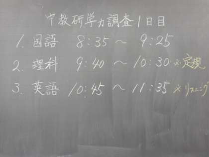 今日は、1限国語、2限理科、3限英語を実施しました。