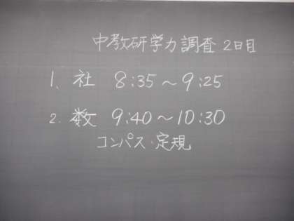 本日の授業(2年生:その1) 公開日 2021/11/05 更新日 2021/11/05 芝園の一日 11月5日(金) 2年生の中教研学力調査二日目の様子です。 今日は、1限社会、2限数学を実施しました。