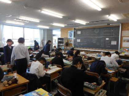 英語では、学習した基本文を繰り返し声に出して読み、学力の定着を図りました。