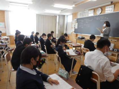 理科では、中教研学力調査の解説をもとに、間違えやすい問題や重要語句について確認しました。