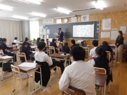 英語では、ALTの先生と会話表現をしながら、学習した内容の復習をしました。