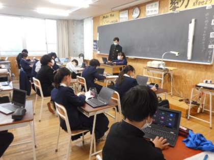 国語では、クロームブックを活用して、資料を効果的に用いたスピーチの発表をしました。