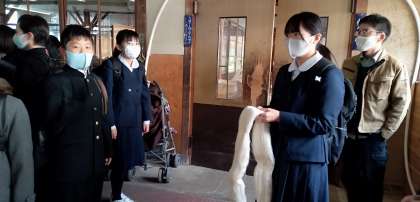 11月11日(木) 機織りの様子。 絹糸を触らせて頂きました。