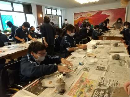 11月11日(木) D組は、三助焼の体験です!谷口さんから三助焼の歴史を聞きながら制作しています。