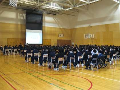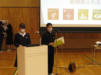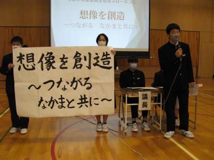 生徒総会(その1) 公開日 2021/11/12 更新日 2021/11/12 芝園の一日 11月12日(金) 本日の生徒総会の様子です。 生徒会執行部より後期生徒会スローガン案を、各委員会委員長より後期生徒会活動計画案を発表しました。
