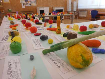 それぞれ身近にあるものから、質感や量感を感じ取り、集中して楽しく制作していました。