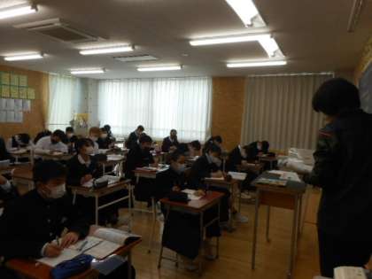 本日の授業(1年生:その2) 公開日 2021/11/16 更新日 2021/11/16 芝園の一日 11月16日(火) 1年生の授業の様子です。 数学では、比例と反比例について学習しました。 保健では、健康な生活の仕方について学習しました。