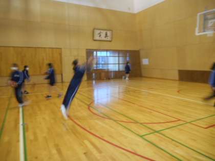 今日の部活動(その2) 公開日 2021/11/16 更新日 2021/11/16 芝園の一日 11月16日(火) バドミントン部は、壁に向かって基礎打ちをしました。 女子バスケットボール部は、3点シュートの練習をしました。 男子バスケットボール部は、45度でボールをミートしてからの1対1の練習をしました。