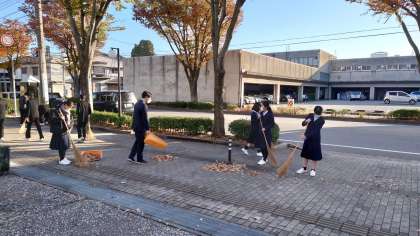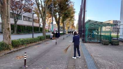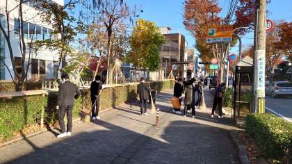 ケヤキ通りの歩道をきれいに掃いてくれました。