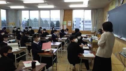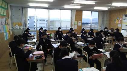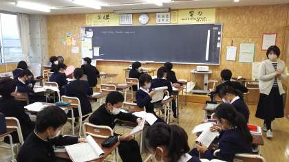 11月22日(月) 1年生の英語の様子です。 ペアになって、発音練習をしています。