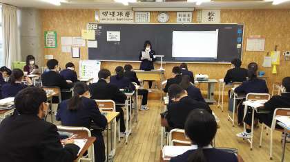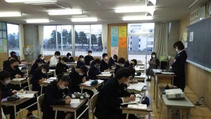 本日の授業(3年生:その2) 公開日 2021/11/22 更新日 2021/11/22 芝園の一日 11月22日(月) 3年生の家庭科の様子です。 「幼児が喜んで遊ぶおもちゃの計画」についての発表を行いました。