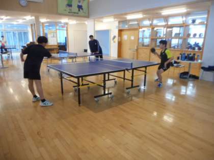 卓球部は、さっそく試合形式の練習で汗を流しました。