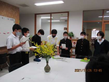終学活後、生徒会執行部が学級会長を集めて、来週の活動について説明しました。