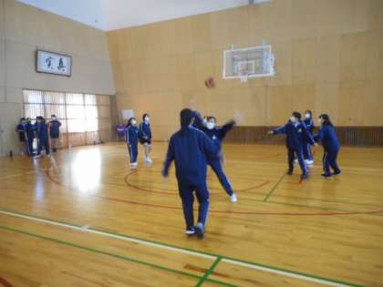 女子バスケットボール部は、5対5の試合形式で、ボールを保持している選手以外の動きの確認をしました。