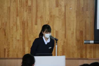 2学年 総合(その5) 公開日 2021/12/01 更新日 2021/12/01 芝園の一日 12月1日(水) 本日の2学年の総合の様子です。 総合で取り組んでいる平和学習において、「『平和』な社会をめざして〜多様性と調和〜」というテーマで課題を追究し、代表の9名の生徒が発表を行いました。