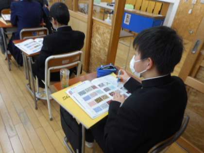 美術では、和を感じさせる物をスケッチしました。茶道で使う、茶筅や扇子などを描きました。
