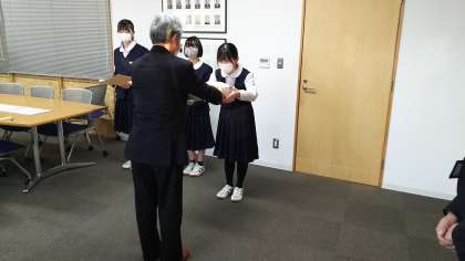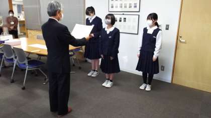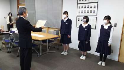 富山税務署の方より、優秀作品となった3名の生徒の表彰が行われました。