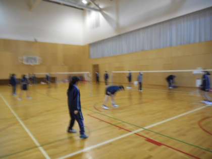 部員数が多い中、工夫して練習しています。基礎打ちをしっかりと行い、その成果を練習に生かしていました。