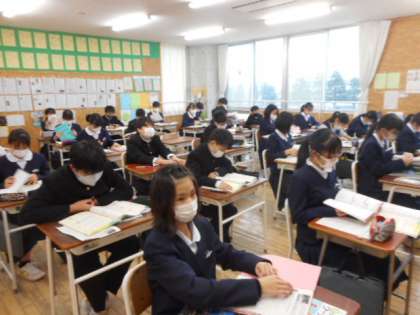 英語では、基本文の要点をおさえ、繰り返し声に出して英文を読みました