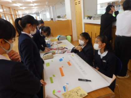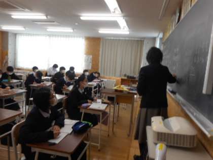 本日の授業(1年生:その1) 公開日 2021/12/10 更新日 2021/12/10 芝園の一日 12月10日(金) 1年生の授業の様子です。 学級活動では、グループで協力して学級の掲示物を作成しました。 数学では、比例と反比例の計算問題に取り組みました。