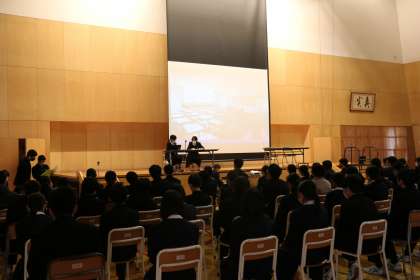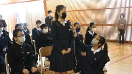 本日の集会では、執行部による劇や、他県で実際に起こった事例を紹介しながら、人権尊重の重要性と、人権を守るために大切な行動について、生徒全員で考えました。