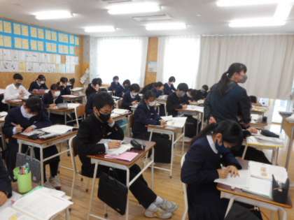 国語では、意見文を読み、筆者の考えについて確認しました。