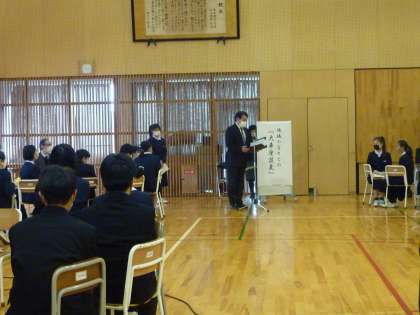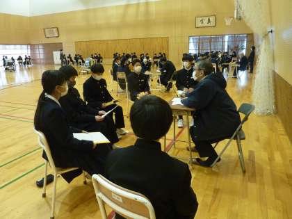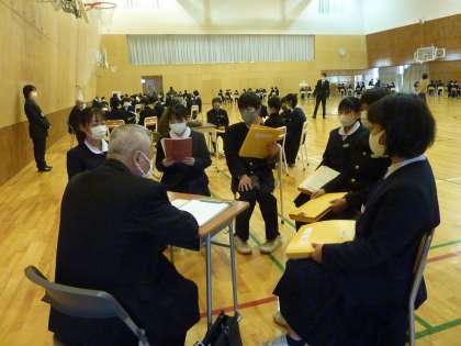 地域の方々は、生徒一人一人の話を熱心に聞いて下さり、和やかな時間が流れました。また、地域の方々も生徒たちにお話をして下さり、それを真剣な面持ちで頷きながら聴いている生徒の姿がとても印象的でした。