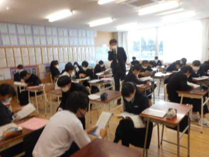 本日の授業(3年生:その1) 公開日 2021/12/20 更新日 2021/12/20 芝園の一日 12月20日(月) 3年生の授業の様子です。 理科では、天体の特徴について学習しました。 英語では、ペアになって、基本文を繰り返し発声しました。