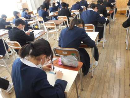 美術では、日本の伝統的な文様を取り入れたデザイン画を作成しました。