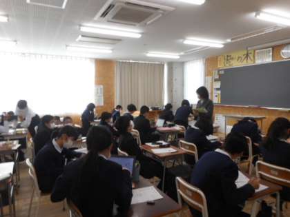 英語では、2学期の振り返りを行い、課題プリントに取り組みました。