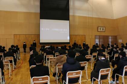 学年生徒会からは、10月に行われた宇奈月での校外学習の振り返り、2学期を振り返って良かった点や改善点などを発表しました。