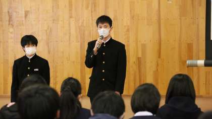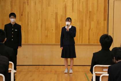 各クラスから代表生徒1名が、2学期を振り返り、がんばってきたことを発表しました。