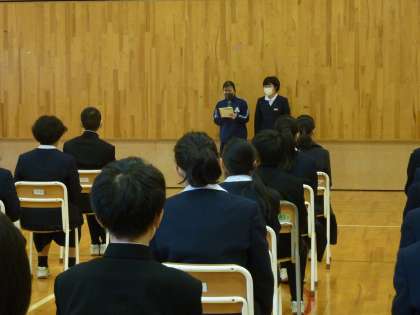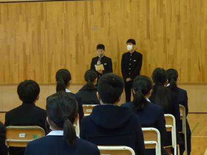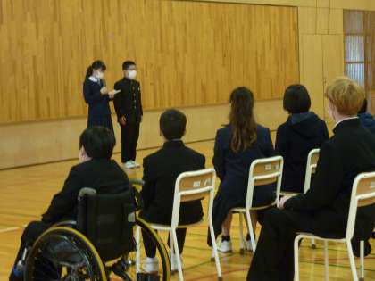 各学級の代表が、2学期を振り返って良かった点や改善すべき点について発表しました。