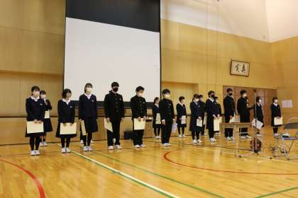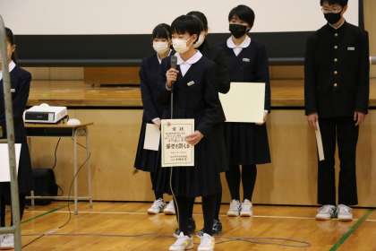受賞報告では、2学期に部活動などで優秀な成績を収めた生徒に賞状を渡し、今後の活動に向けての意気込みを発表しました。