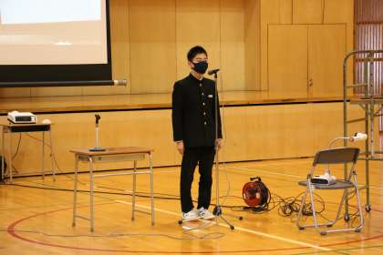 受賞報告では、2学期に部活動などで優秀な成績を収めた生徒に賞状を渡し、今後の活動に向けての意気込みを発表しました。