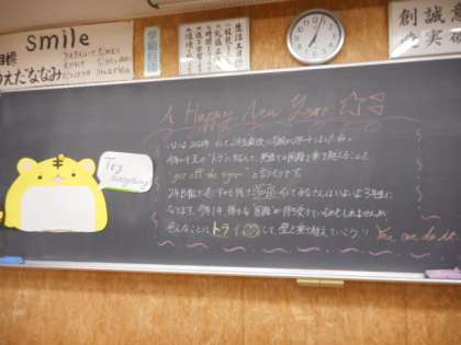 新学期スタート(その3) 公開日 2022/01/11 更新日 2022/01/11 芝園の一日 1月11日(火) いよいよ3学期が始まりました。 各教室の黒板には、新しい学期を迎えるにあたって、担任から温かいメッセージが書かれており、登校した生徒を迎えました。