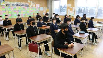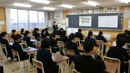 生徒会副会長からは、「新しい年、皆で具体的な目標を立てて向上していこう」と伝えていました。姿勢を正し、真剣に聞いていました。