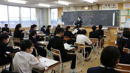 1月11日(火) 2学年の学活では、担任の先生からの話を聞き、3学期に向けての目標や今年の抱負を書いていました。